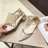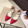 2025 Spring Summer Shoes Women Low Heels Fashion Brand Pointed Toe Rivets Elegant Ladies Heel 3cm Black Red Plus Size 41
