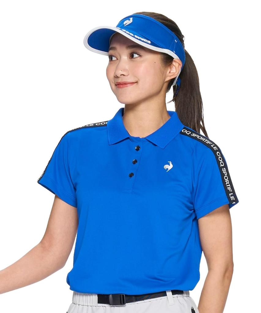 Coq Sportif Short Sleeve Shirt Logo Tape Sporty Mix and Match Sweat Absorbent Quick Drying Golf LG5SHS06L BL00 [Le Golf] A-Line Women's (Blue)