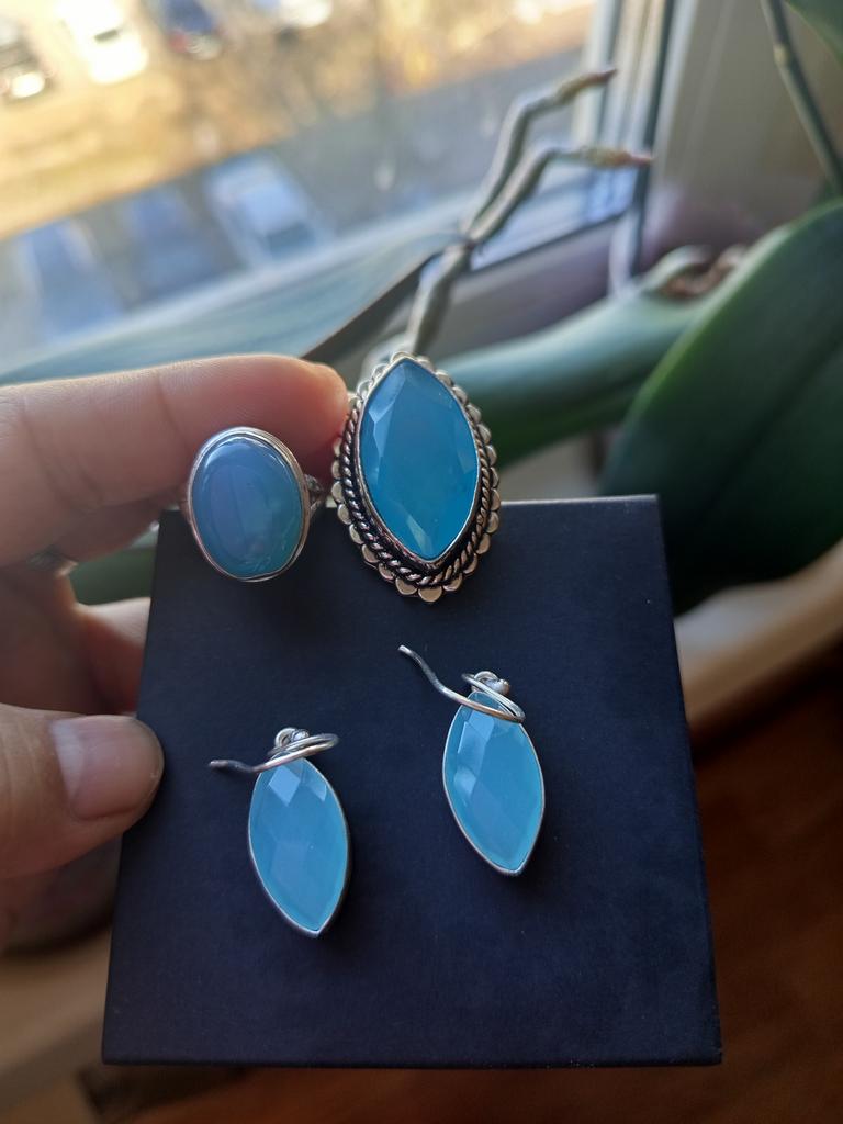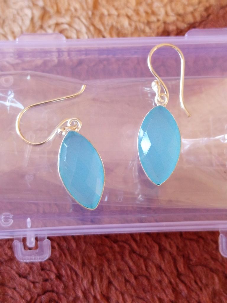 Blue Chalcedony Gemstone 925 Solid Sterling Silver Handmade Antique Jewelry Gift For Mother Earrings