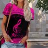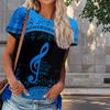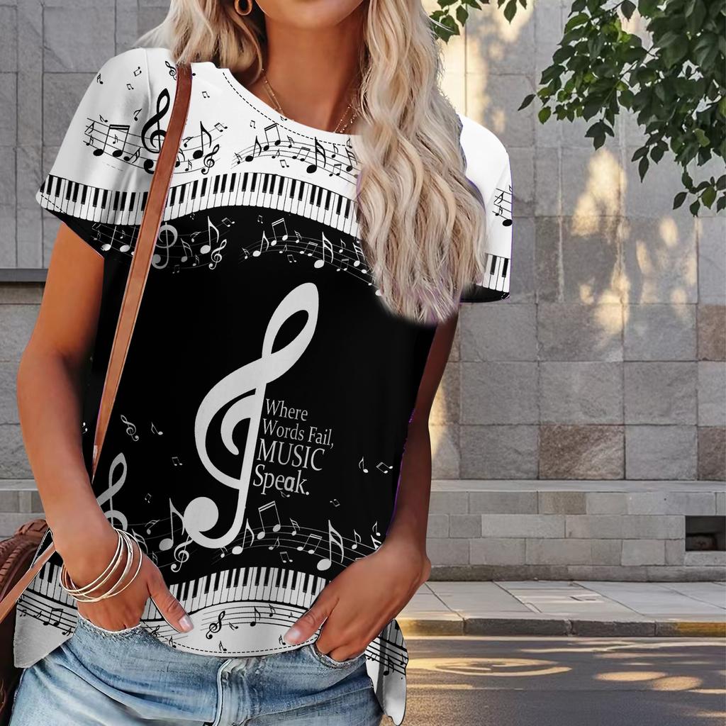 Women Summer T Shirt Musical Note Print Retro Fashion Short Sleeve Tees Casual Printed Tops