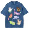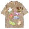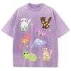 Cartoon Animal Print Women Distressed T-Shirt Oversized Vintage Distressed Short Sleeve Unisex Wash Cute Top