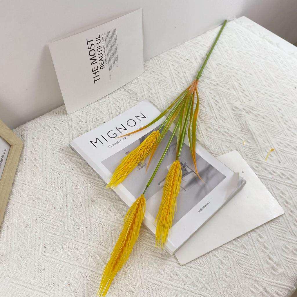 10pcs Simulated Plant Single Branch 3 Fork Wheat Ear Golden Rice Wheat Ear Pastoral Crop Home Decoration