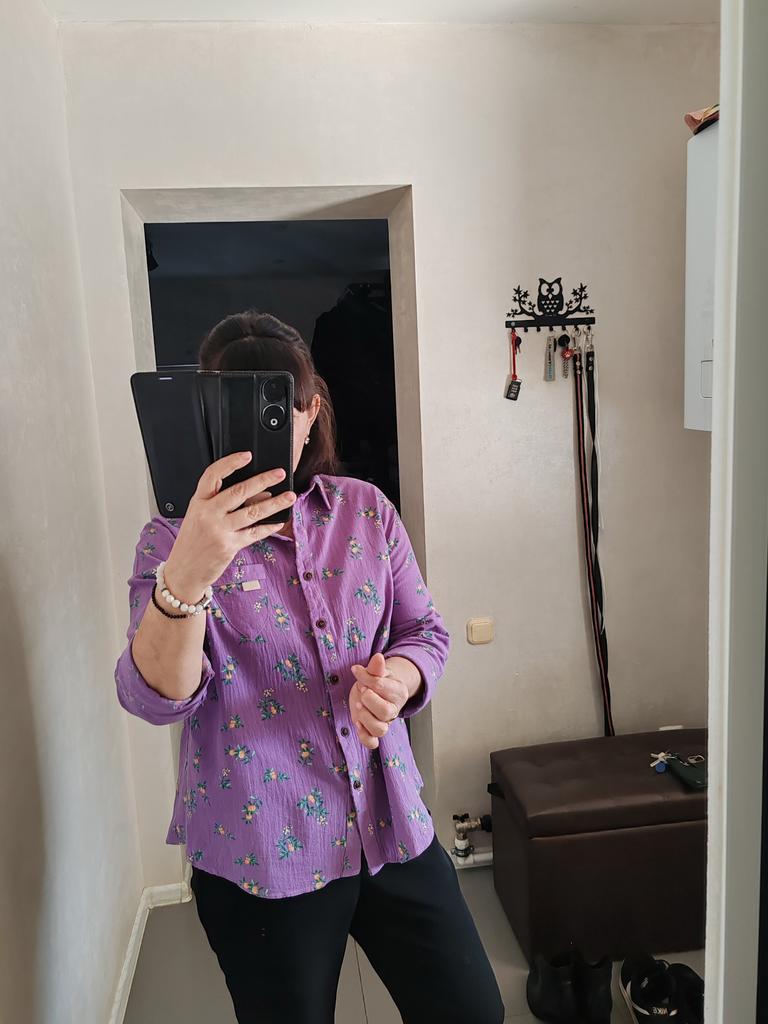 The shirt is pretty, the material doesn't need ironing after washing - it's crinkled, but the sleeve is too narrow for me