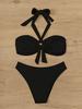 Solid Color Halter Strap Tube Top Sexy Bikini Split Swimsuit