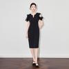 Shenzhen Nanyou Off-Shoulder Wooden Ear Edge Summer Dress - Celebrity Style Elegant Hip Skirt for Women