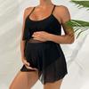 Solid Color Loose Belly Covering Pregnant Women's Split Swimsuit Two-piece Suspender Swimsuit Beachwear Bathing Suits
