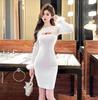 2024 Sexy Red Hollow-Knit Slim Fit Dress for Women - Autumn/Winter