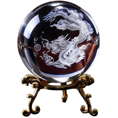 Round Twin Two Dragon with Special Approximately 80mm In Diameter Ball, Crystal, Glass, Five-clawed Dragons, Gods, Pedestal,