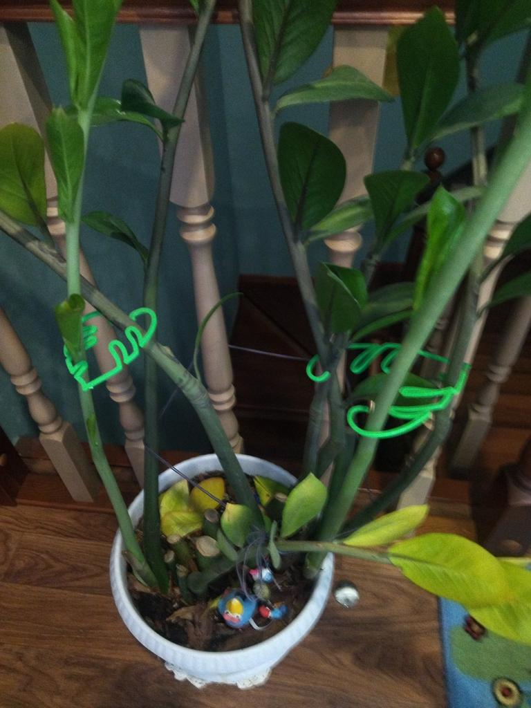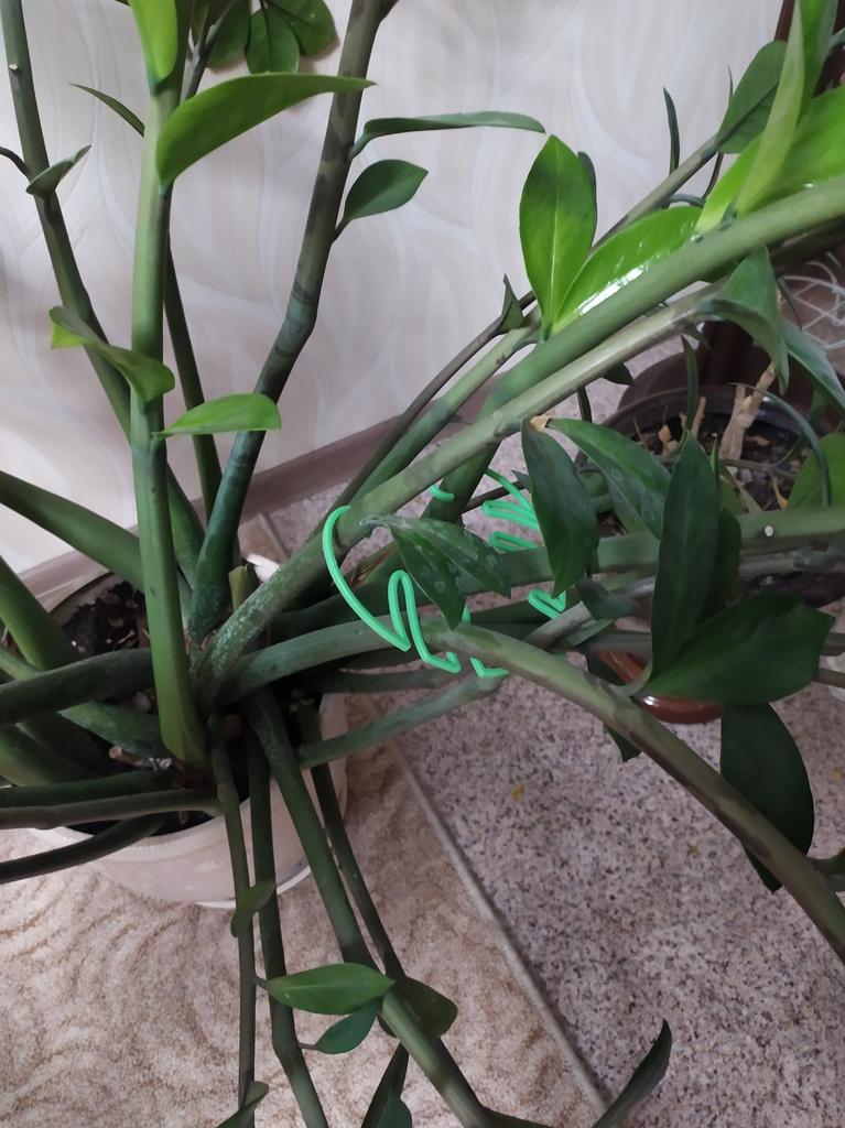 Satisfied with the purchase, attached it to the stems of the zamioculcas, the leaves gathered compactly, holds well