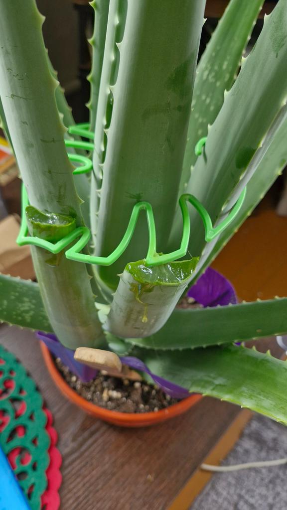 Plastic plant support frames, the idea might not be bad, but it doesn't suit all plants. I needed it for aloe, but the holder has sharp edges, it cut up all my aloe, so I didn't like them.
