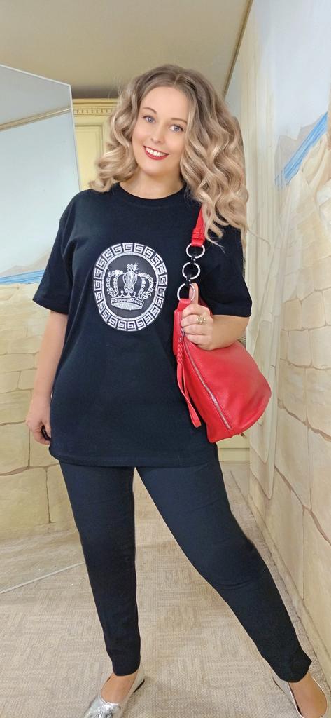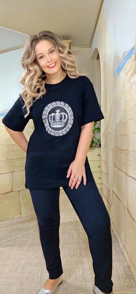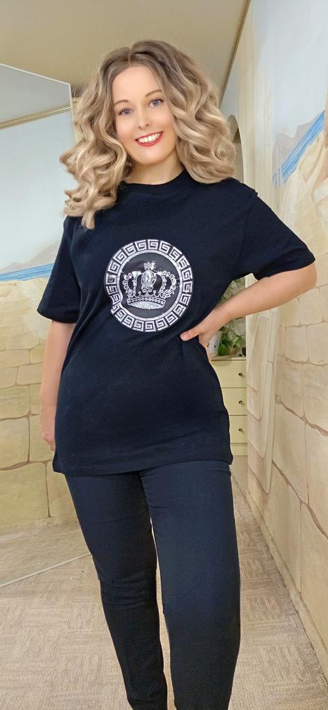 Women's Short-sleeved Loose and Fashionable T-shirt with Crown Print