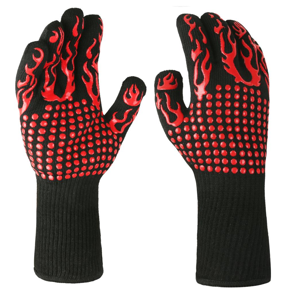 Extreme Heat Resistant BBQ GlovesThe barbecue gloves withstand a high temperature of up to 1472℉/800°C. The outer layer is made from aramid, same material as the flame resistant clothing of fire fighters. Can be used in kitchen, outdoor BBQ, oven, stove, vehicle repair, welding, electrical repair, metal stamping work etc.