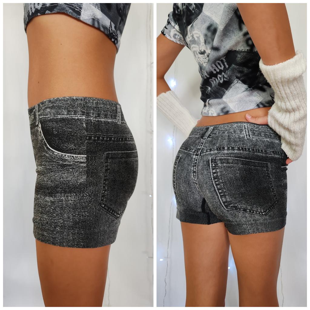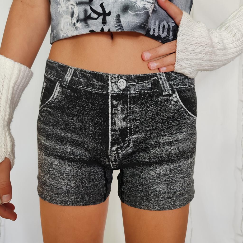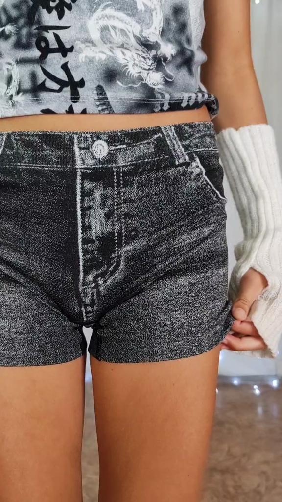 Women Shorts High Stretchy Imitation Denim Short Leggings with Pockets Tight Fitting Summer Shorts