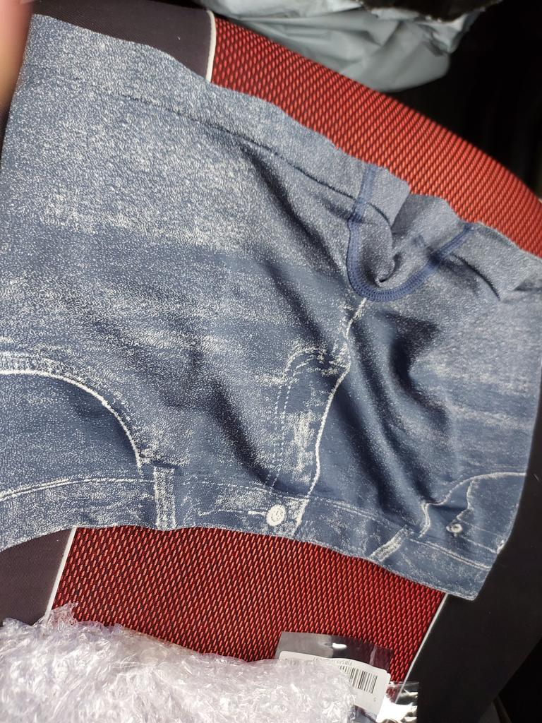 These are briefs with a printed image of denim shorts.