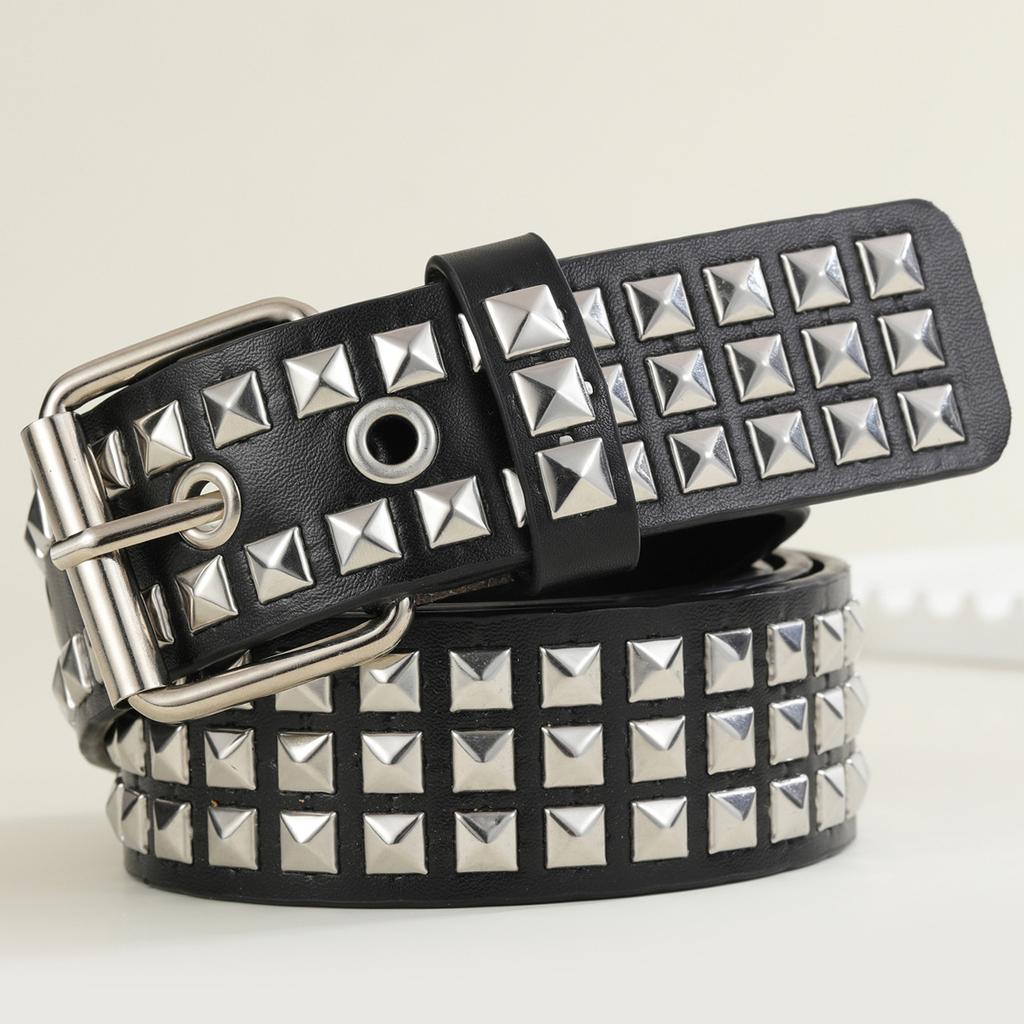 Square Bead Rivet Belt Metal Pyramid Belt Men'S And Women'S Belt Punk Hardware Jeans Belt