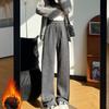 Herringbone Chenille Wide-leg Pants for Women's Autumn and Winter New Style Plush Pants for Slimming Loose Casual High-waist Straight-leg Pants