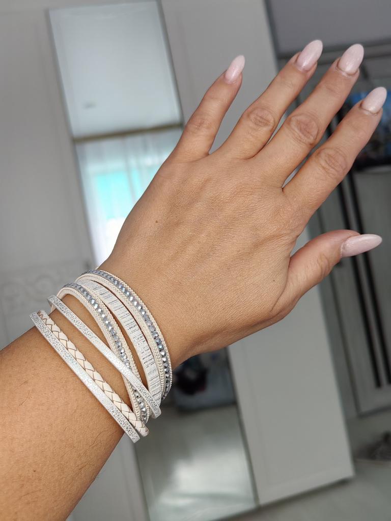Very beautiful bracelet! I didn't expect white leather to look so chic. Wrist size 18-19...