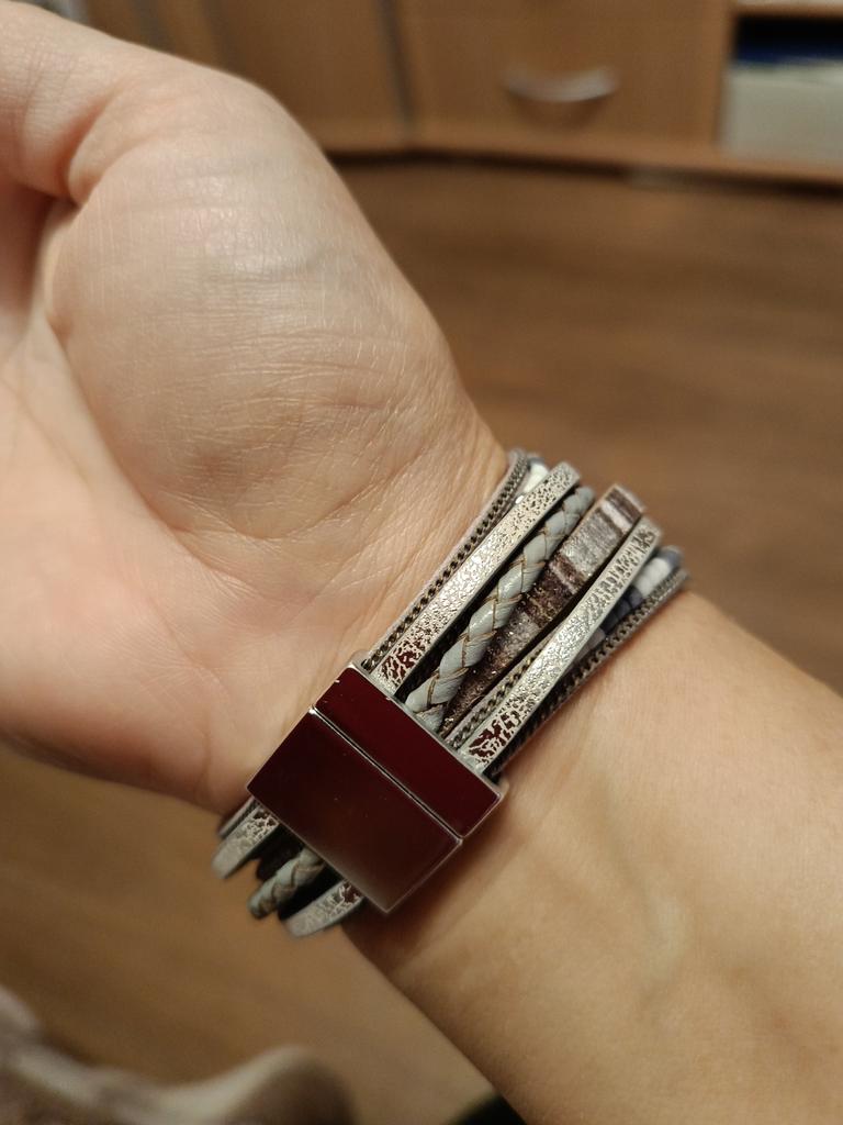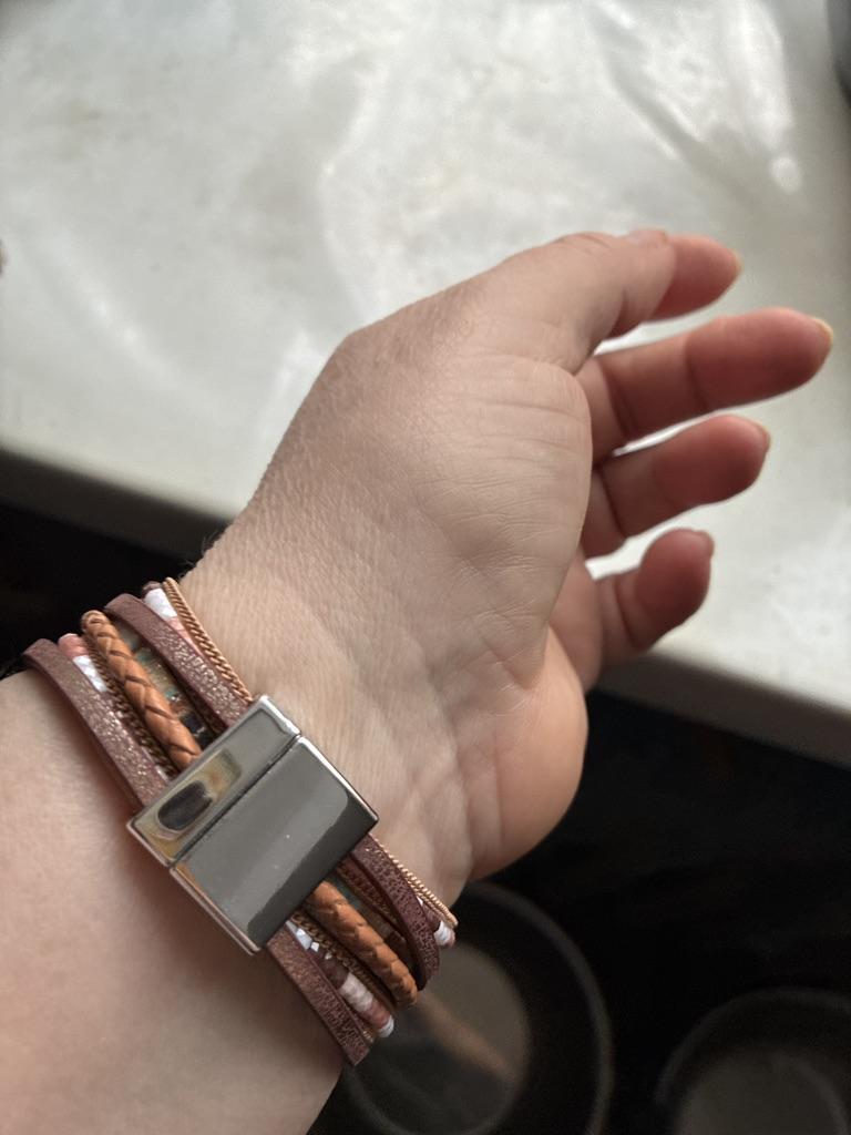 A cute faux leather bracelet with a magnetic clasp. Happy with the purchase.