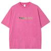 Minimalist Hand-Painted Letter Print Ladies Washed T-Shirt Oversized Loose Short Sleeve Design American Retro Top