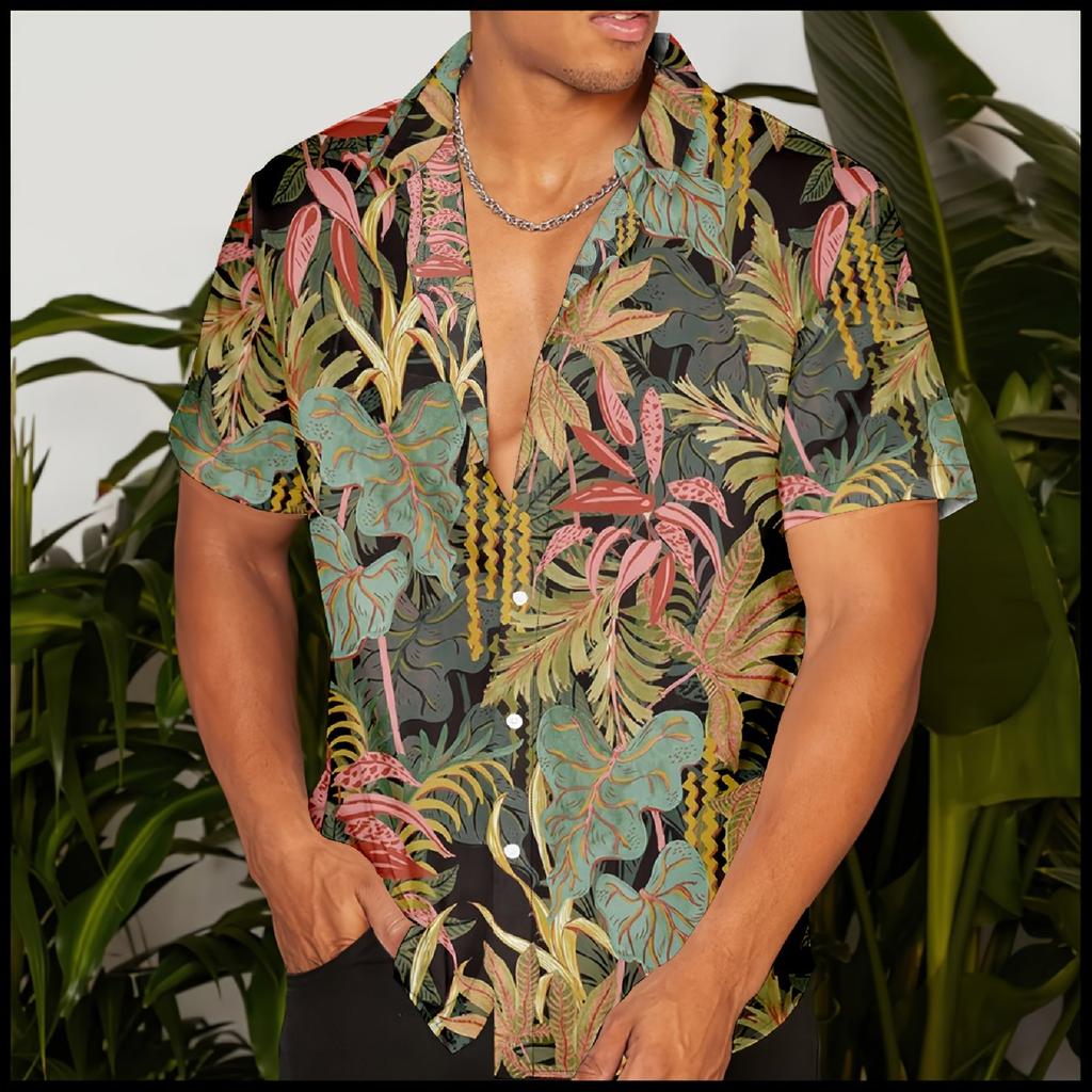 Men's 3D Printed Tropical Leaf Design Short Sleeved Shirt