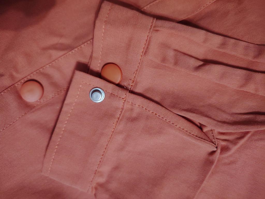 I thought it was denim, but it's just thick cotton. The color seems the same, but the model isn't quite - the one in the photo is shorter in reality and has snap buttons