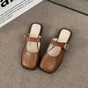 2024 Square Head Korean Version Belt Buckle Empty Single Shoes Sandals Spring New Lazy Slippers Fashion Bag Head Half Slippers
