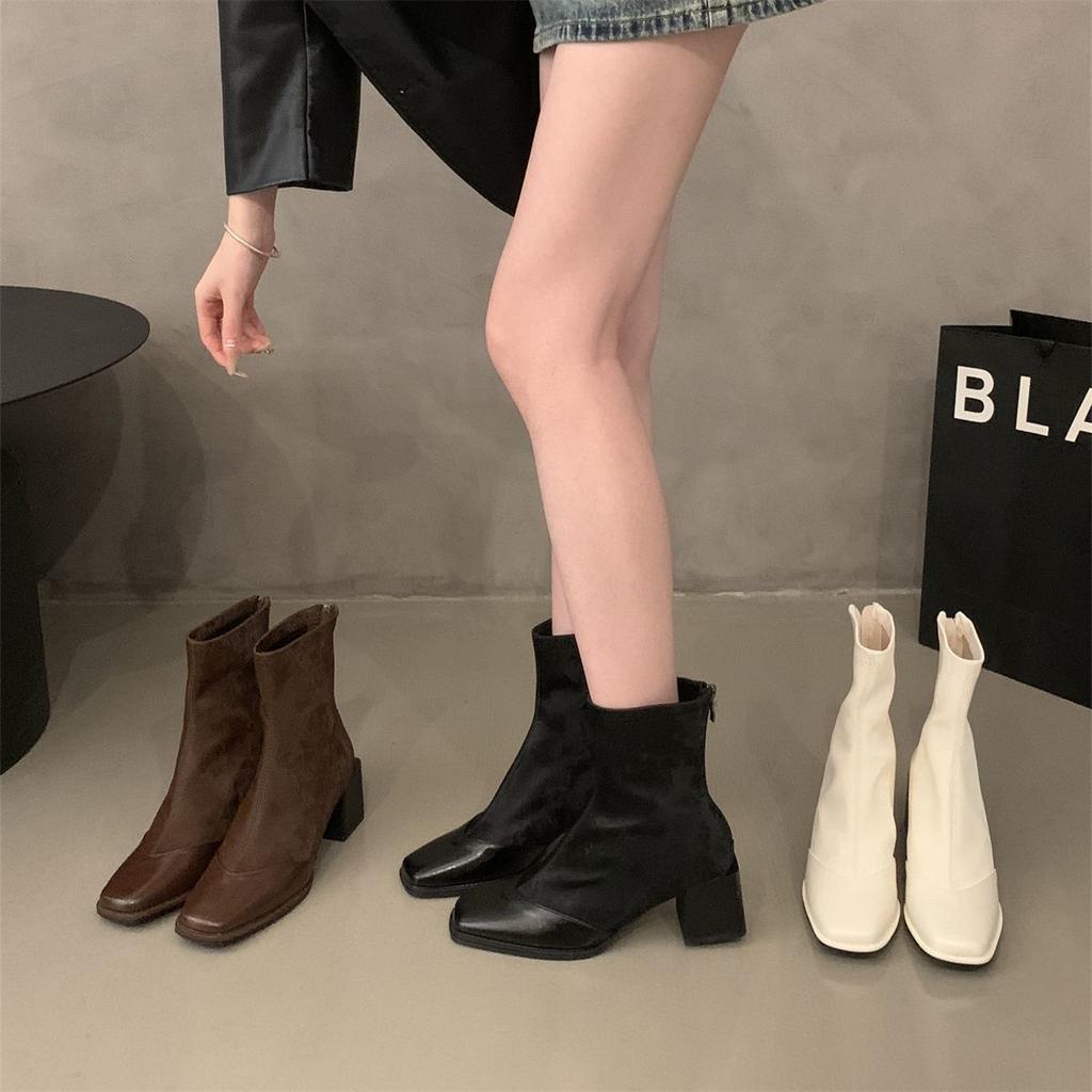 Retro Thick Heel Short Boots Women's 2024 New Autumn and Winter Leather Boots French Thin Boots High Heel Boots Ankle Boots Martin Boots