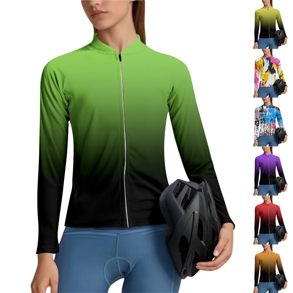 Women's Gradient Cycling Suit Long Sleeved Cycling Top With 3 Back Pockets, Breathable, Quick Drying, Moisture Wicking And Reflective S