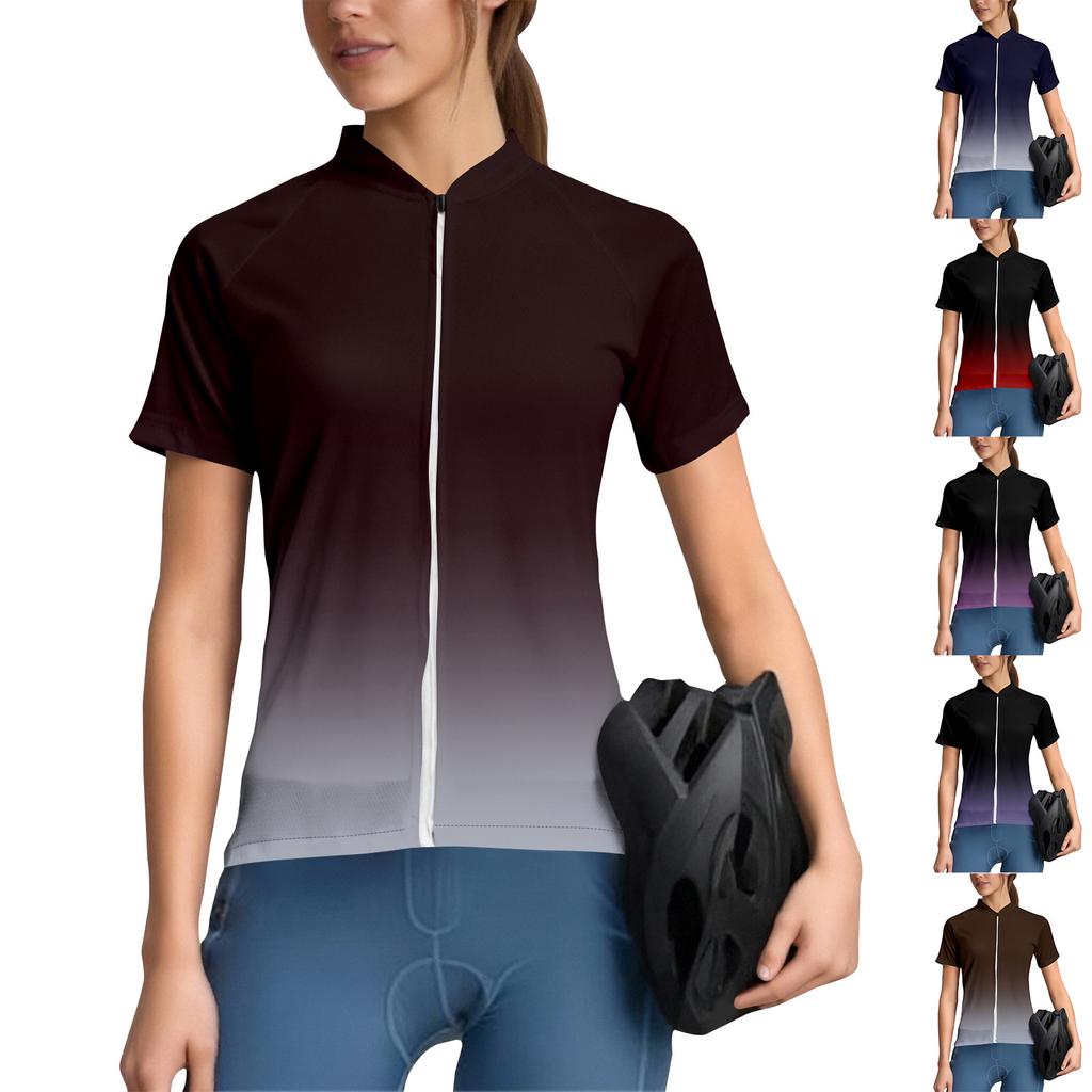 Women's Gradient Cycling Suit Short Sleeved Cycling Top With 3 Back Pockets, Breathable, Quick Drying, Moisture Wicking Reflective Strip For Cycling