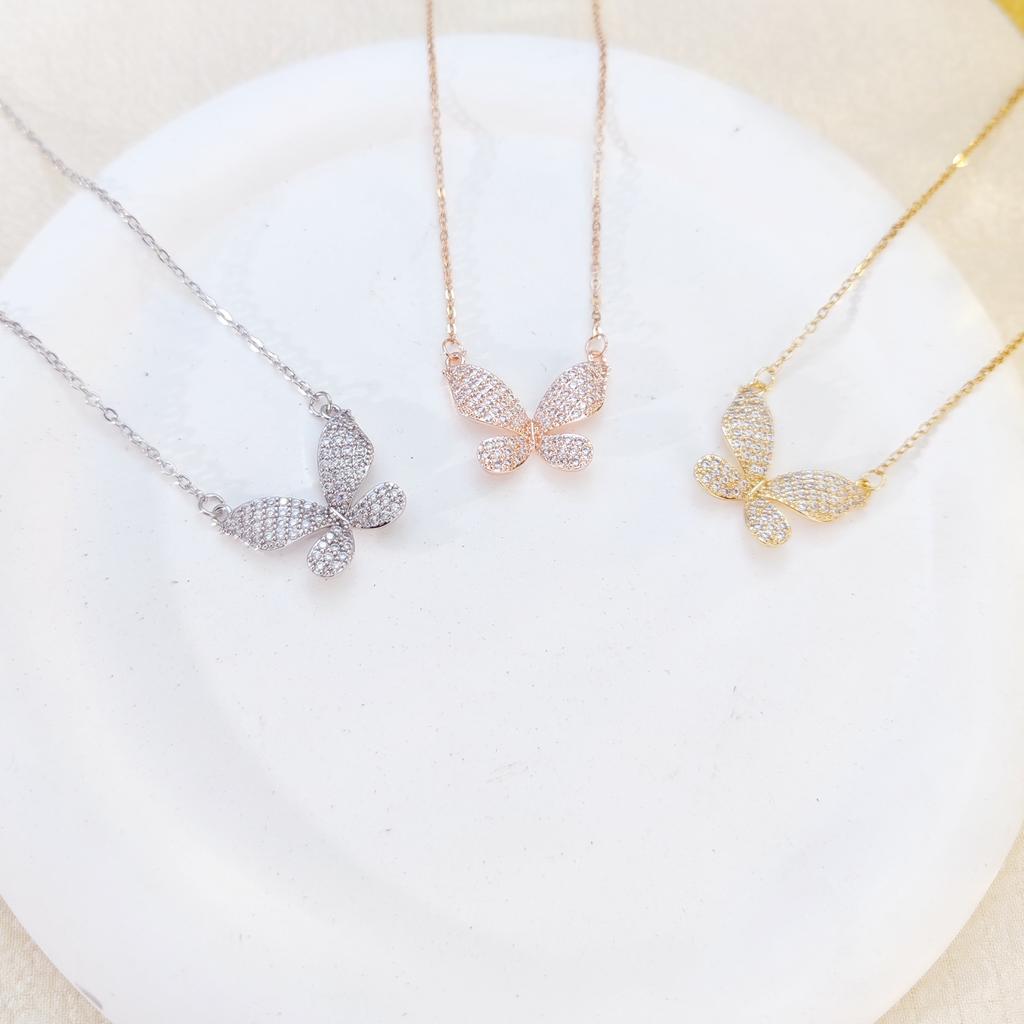 Full Diamond Butterfly Necklace Women'S Premium Light Luxury Fresh Zircon Pendant Clavicle Chain Jewelry