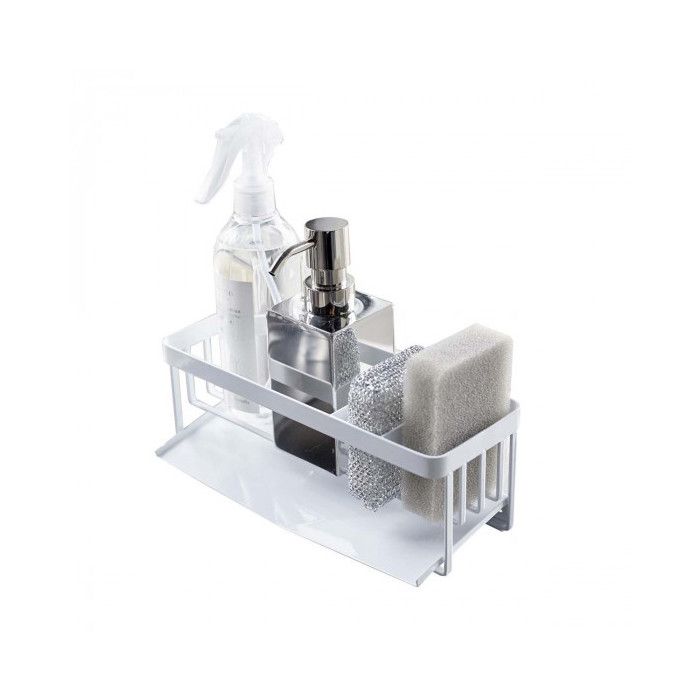 Organisateur d'évier - on range tout ! - métal blanc - 3 compartiments - fond amovible - 25 cm long