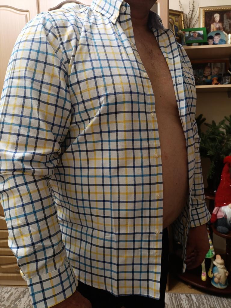 Nice shirt in a comfortable quality The shirt was too small for me. It was both too short in the sleeves and too tight to button up the shirt.. I should have chosen one or two sizes larger, or a different model of shirt.
