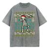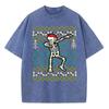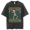 Skull Print Women's T-Shirt Y2K Unisex Style Oversized Washed Denim Short Sleeve Retro Trend Harajuku Top Men