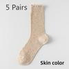 5 Pairs of Female Spring and Summer Thin Agaric Lace Sweat Absorbing Breathable Boneless Long Tube Pile Socks