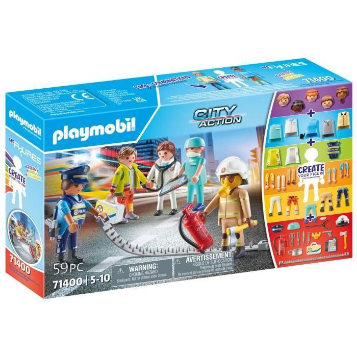 Playmobil my figures héros du quotidien - 71400 - police, pompier, médecin, secours - city action - 5 ans - 59 pièces