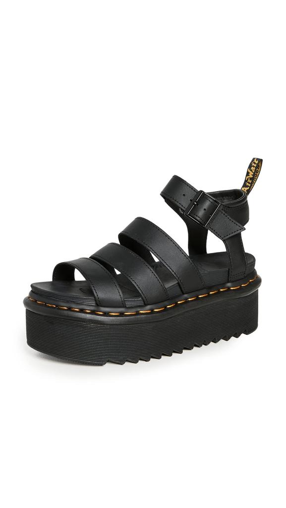 Martens Blaire Quad Strap Sandals Thick Sole Black Hydro Leather Black Hydro Black Black Dr. [27296001 SS22]