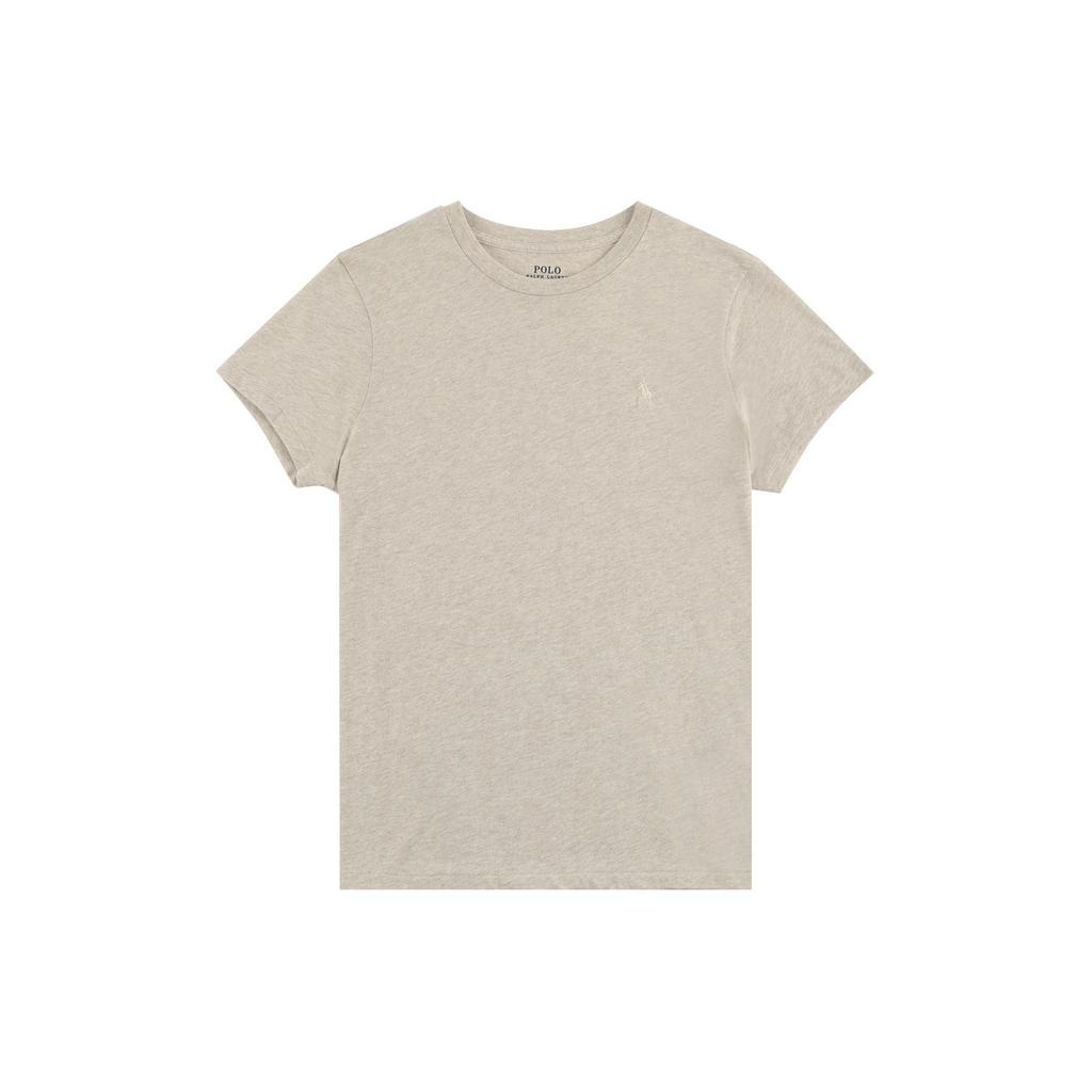Polo Ralph Lauren Solid Logo Embroidered Crew Neck Short Sleeve T-Shirt Women Tops Oatmeal 211682521-024