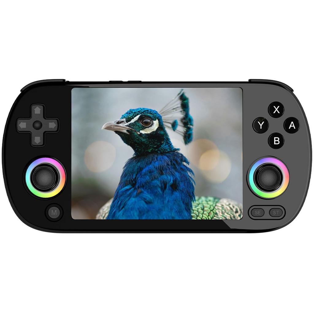 【ANBERNIC RG40XX H Game Machine】RG40XX H has a 640*480 high resolution screen, ensuring vivid visual effects and vibrant colors, RG40XX H makes games come alive. 16 million color RGB joystick light supports many light effects such as constant brightness, breathing, rainbow, lamp cover, tracking, gaming, 40XXH supports custom color and brightness adjustment.