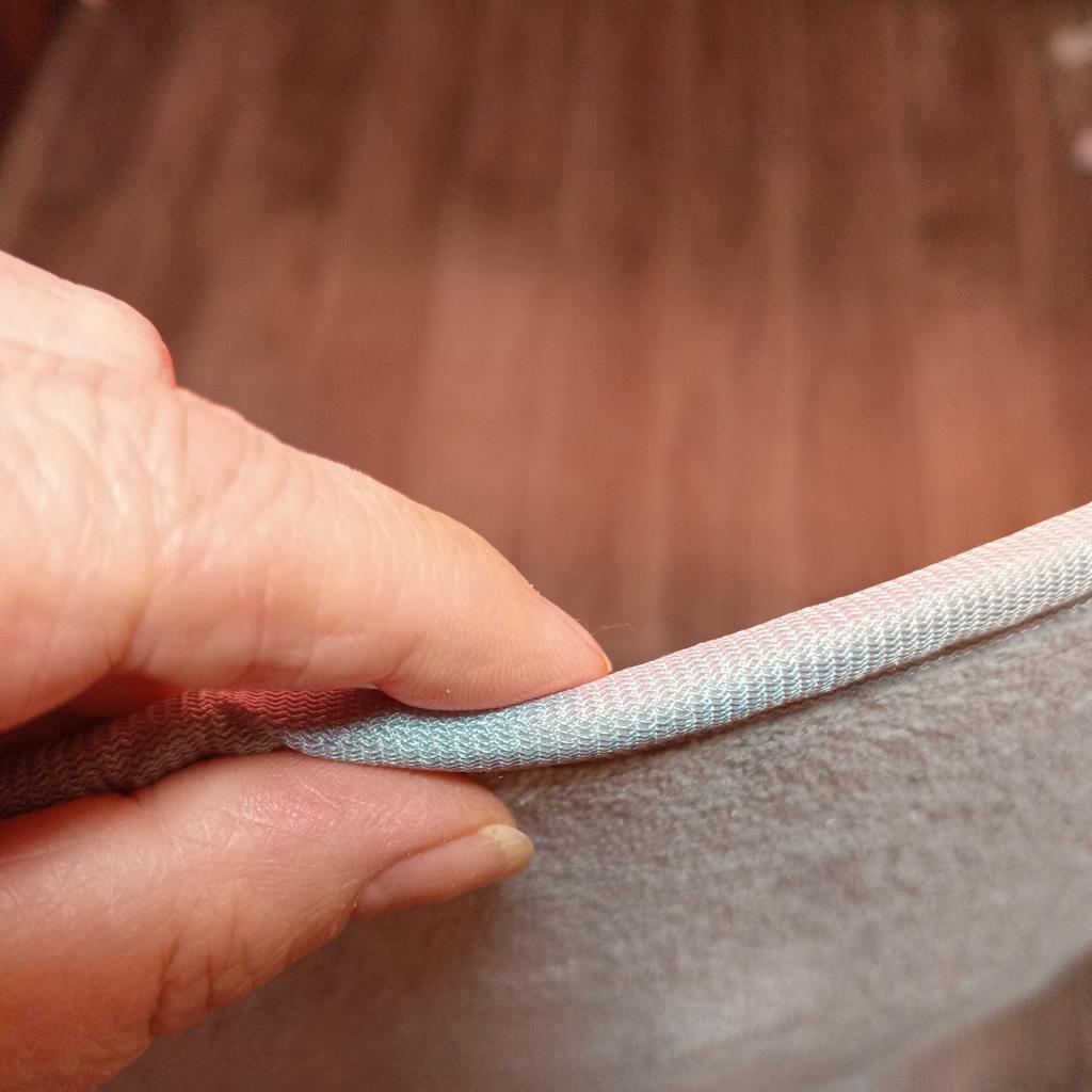 Very light, thin, slides on the floor, mouse color. Although sewn neatly.
