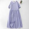 2025 Spring New Round Neck Short-sleeved Cardigan Dress Women's Small Striped Medium and Long Shirt Skirt