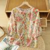 2025 Summer New Refreshing Versatile Printed Cotton and Linen Shirt Women's Seven-quarter-sleeved V-neck Casual Temperament Cardigan Top