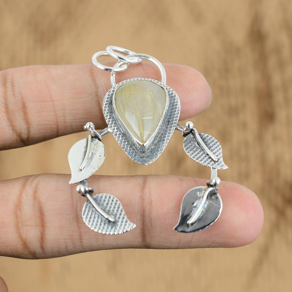 Natural Golden Rutile Gemstone Pendant 925 Sterling Silver Jewelry For Girls