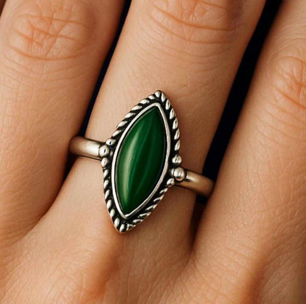 Malachite Ring, 925 Solid Sterling Silver, Malachite Gemstone, Green Stone Ring, Boho Gift for Her