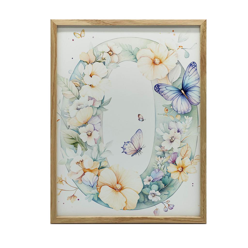 1x Poster Joyful ""O"" in Floral Wreath, 30x40 cm, dark brown wooden frame, matte paper 230 gsm