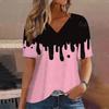 Gradient V Neck Short Sleeve T-Shirt Fashion Women T Shirt Print Basic Tops Streetwear Summer Oversized Clothing Female T-Shirts