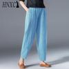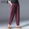 HNXC 9 Color Order Two Sizes Up, Women Summer Casual Loose Elastic Waist Cotton Linen Harem Pants Slim Trousers Ninth Trousers
