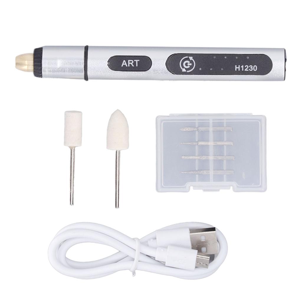 1 x Grinder Pen6 x Accessories1 x USB Cable2 x Storage Boxes3 SPEEDS: This mini cordless rotating tool supports 3 speed adjustment, with 5000RPM, 10000RPM, 18000RPM, with excellent load speed.