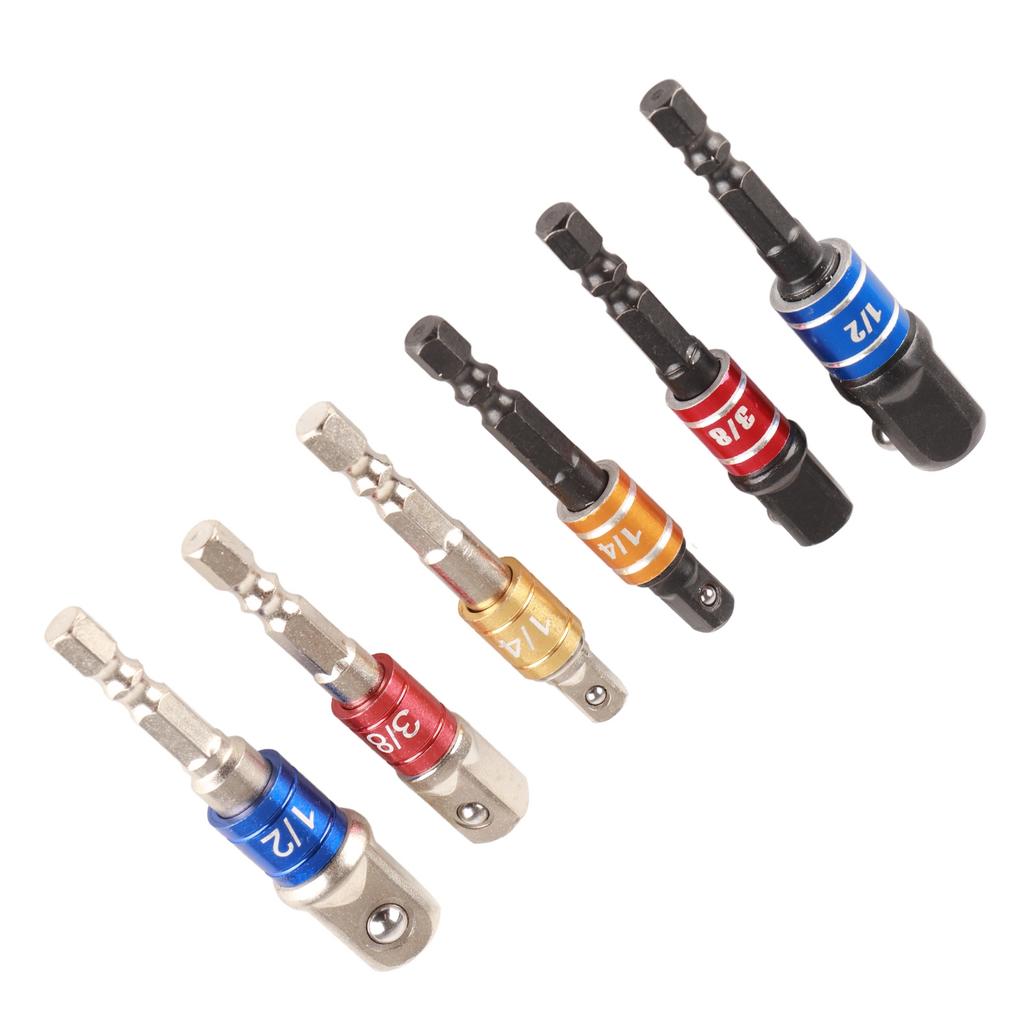 6 x Socket AdapterHex Shank Design: Hex Shank Bits are used for installation of pneumatic screwdrivers, electric screwdrivers, pneumatic drills, hand screwdrivers and other hex tools.