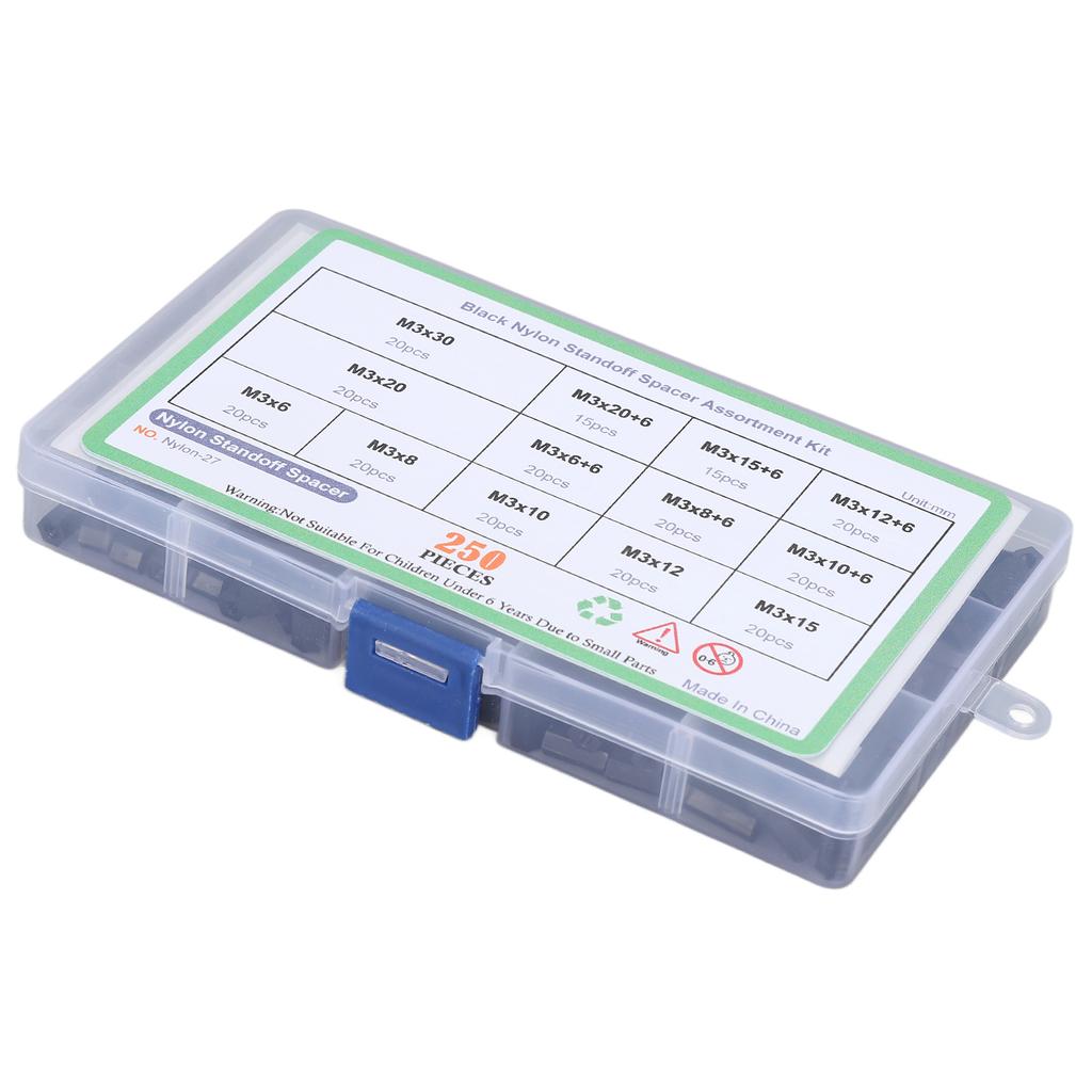 250Pcs Nylon Hex Spacer Standoff M3 Screw Nut Threaded Pillar for DIY UAV Industry