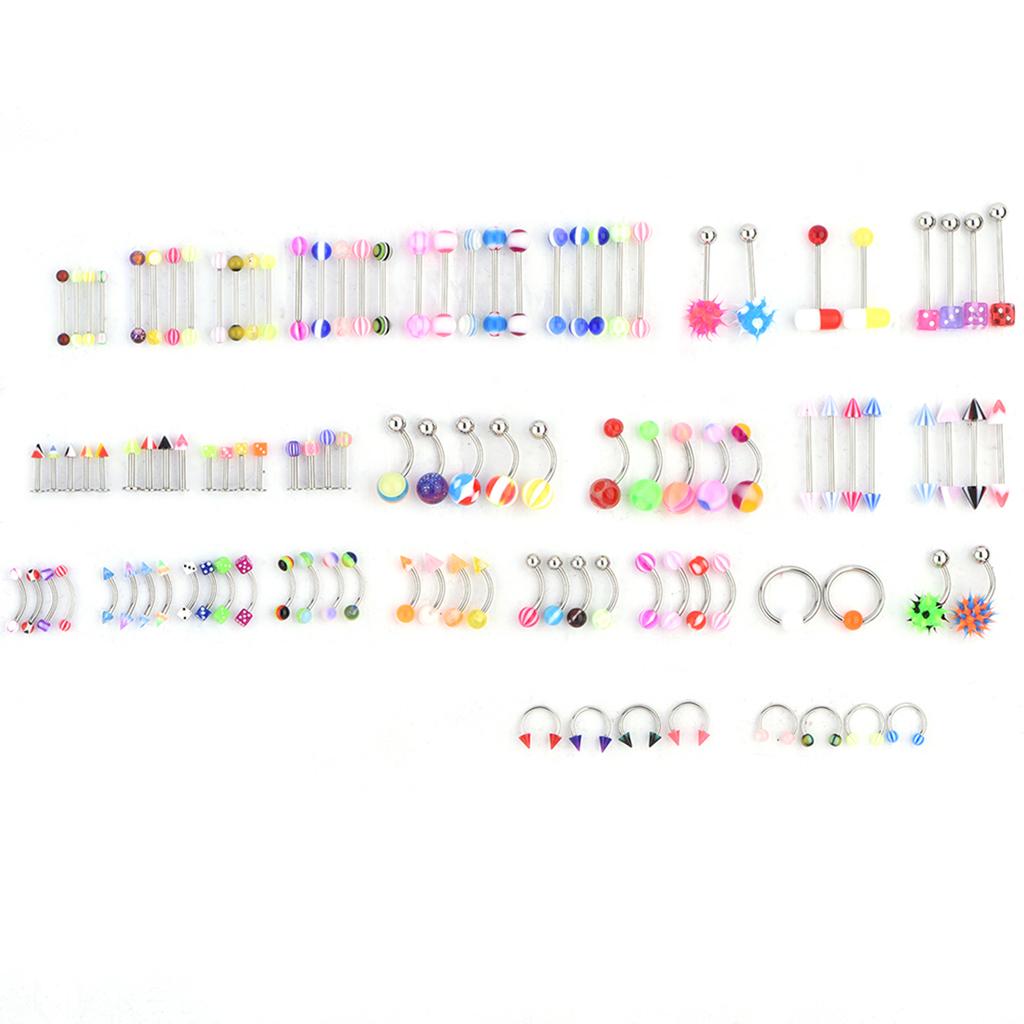 110pcs/set Tongue Nose Belly Button Rings Mixed Stainless Steel Body Piercing Jewelry